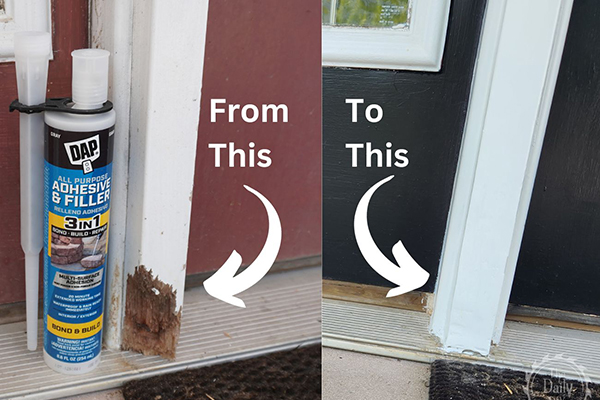 Repair a rotted door trim with the help of DAP All Purpose Adhesive and Filler. Check out the tutorial from The Daily DIY.