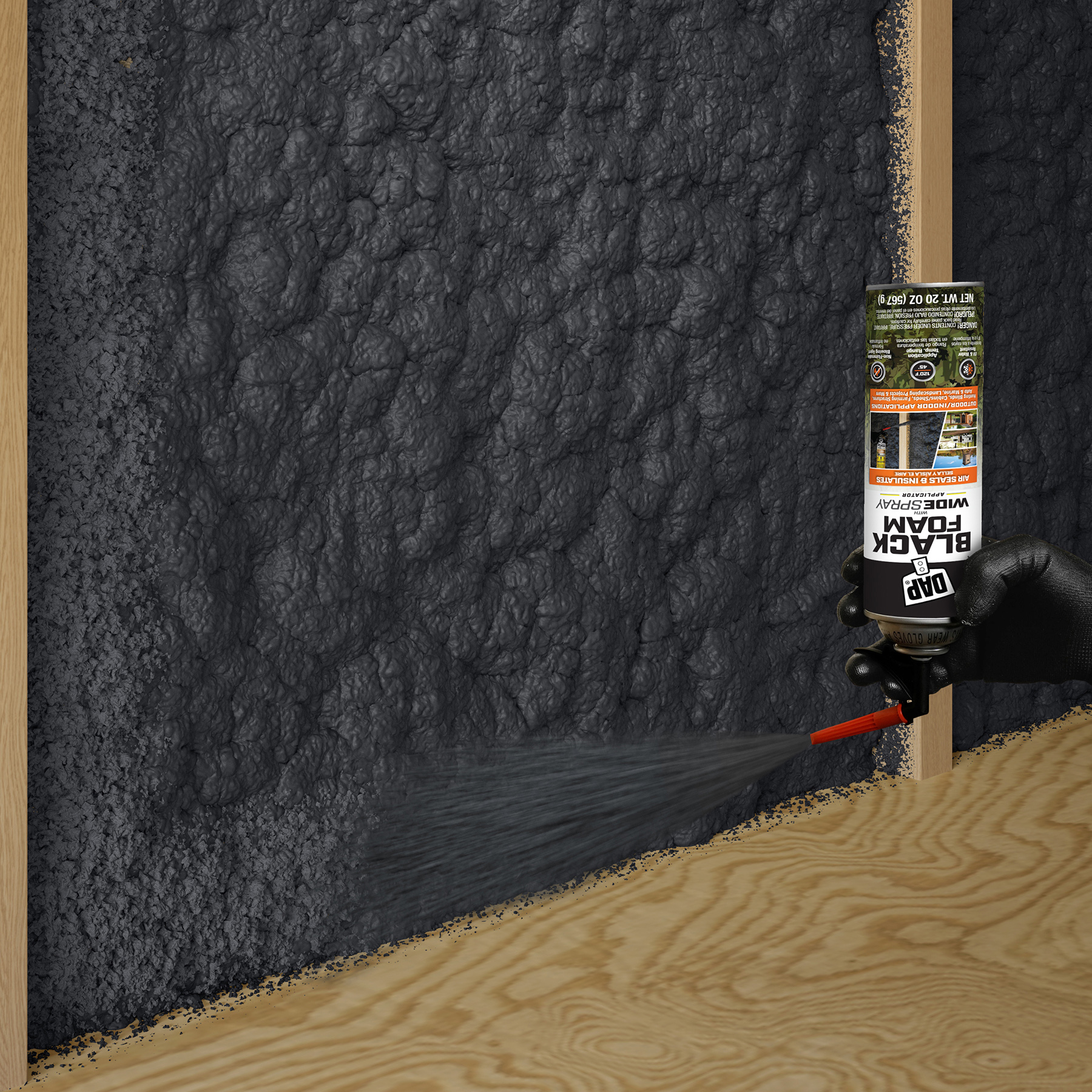 Black Insulating Foam with Widespray Applicator is a high-performance, one-component polyurethane foam designed for sealing, insulating, and soundproofing. Featuring a patent-pending adjustable nozzle for horizontal and vertical spray patterns, it delivers precision and versatility for small projects and touch-ups. The UV-resistant black finish ensures long-lasting durability in both indoor and outdoor environments. Ideal for use in rim joists, sheds, RVs, and deer blinds, it meets Class A fire resistance standards and enhances R-value.