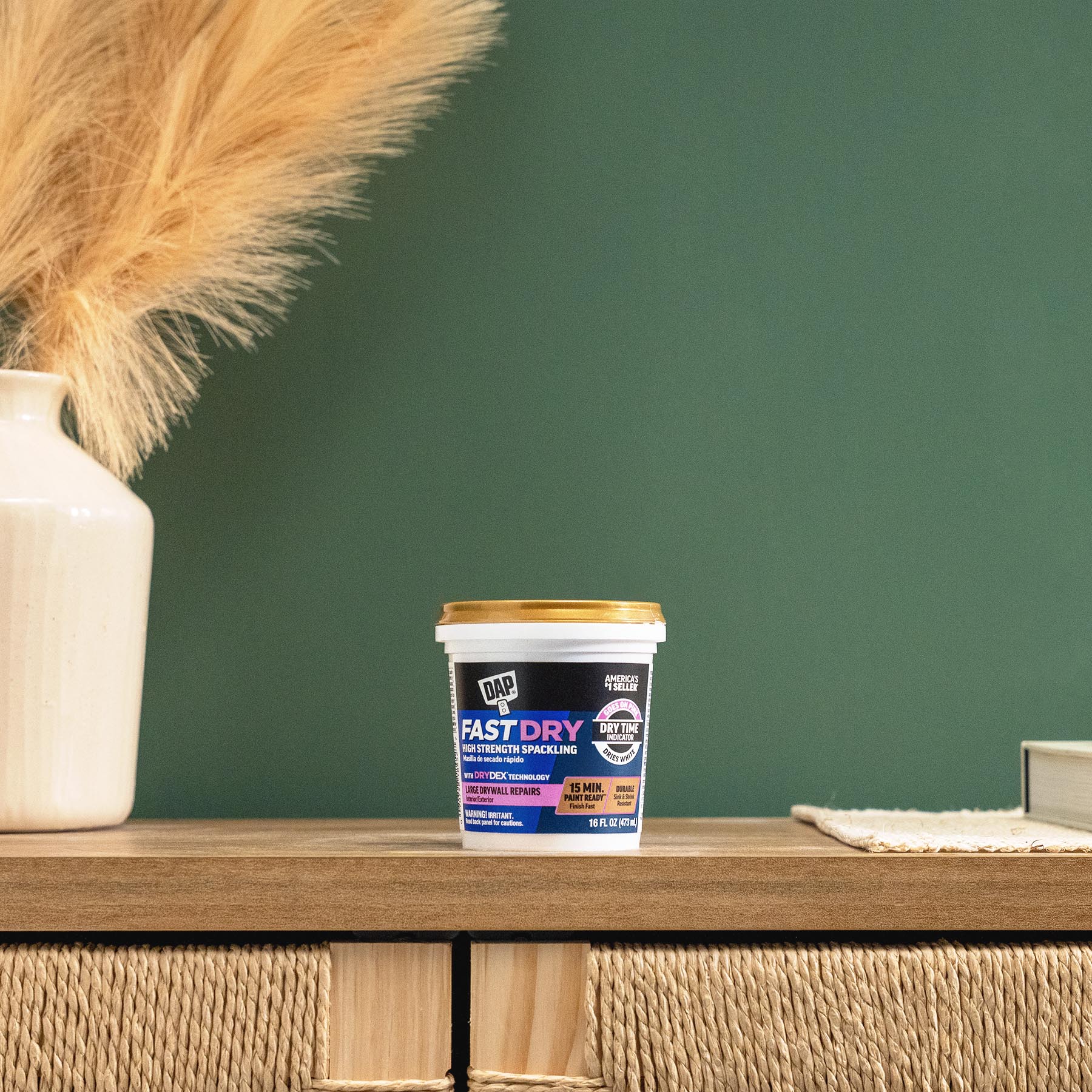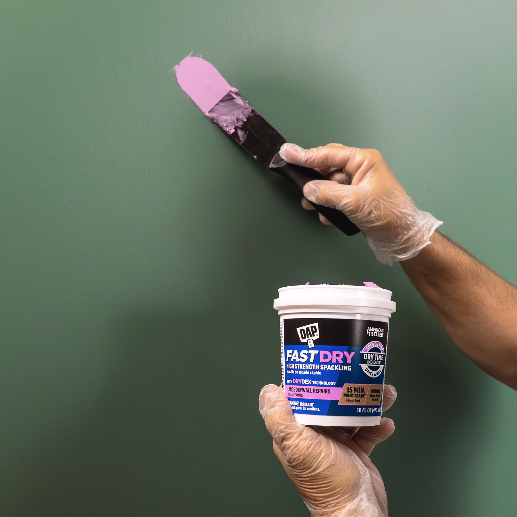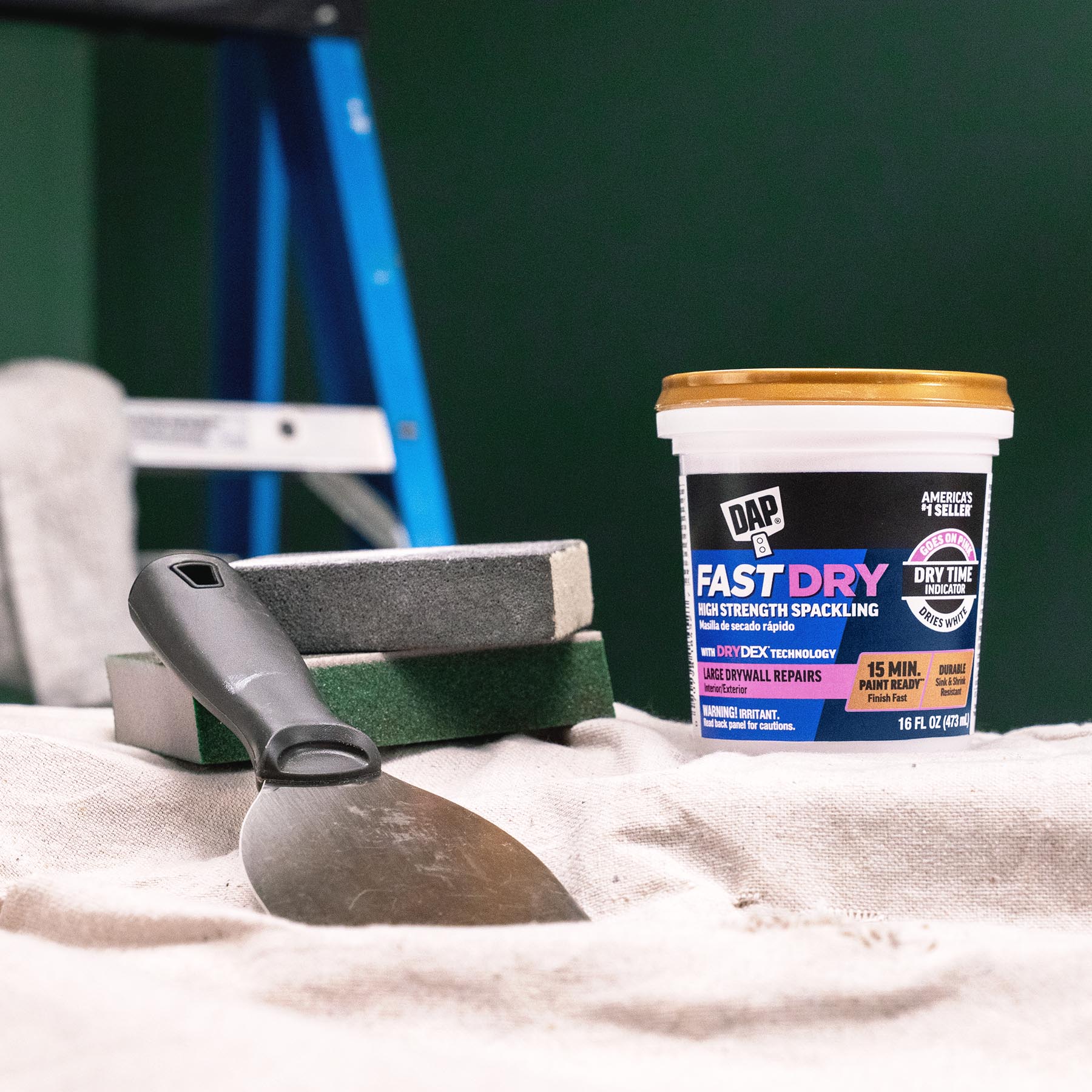 DAP Fast Dry High Strength Spackling is a professional-grade spackling compound uniquely formulated to provide strength and fast drying capabilities allowing some repairs to be painted in as little as 15 minutes. Its ready-to-use, smooth formula spreads easily and won’t sink, shrink or crack, typically filling repairs in one coat. DAP Fast Dry High Strength Spackling is 3X Stronger with superior impact resistance over traditional spackling compounds.